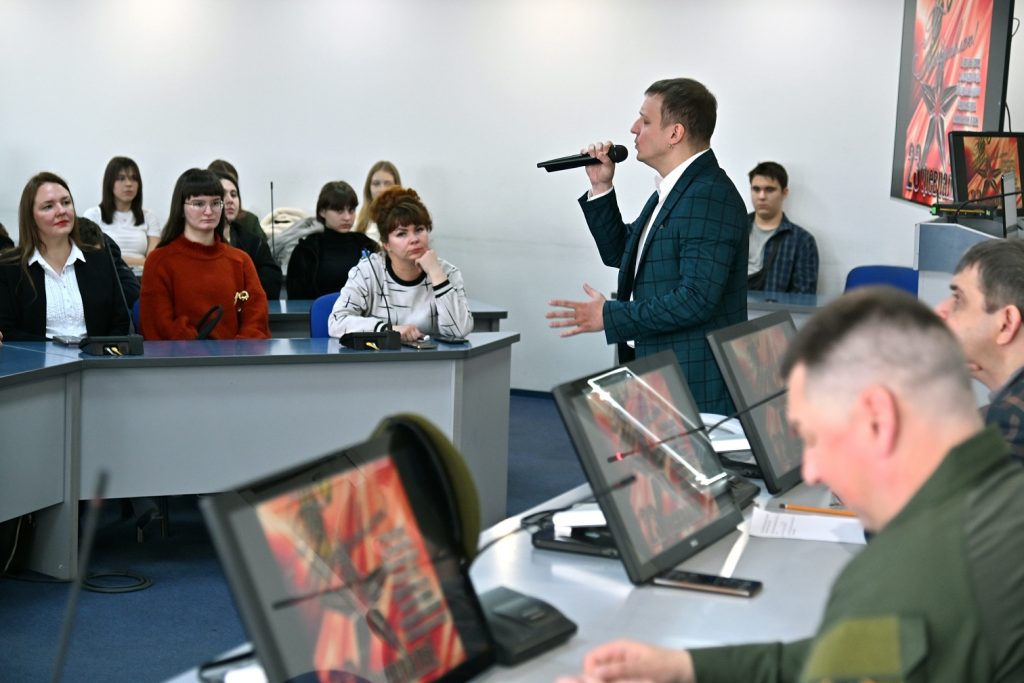 К диалогу также подключились участник СВО Виктор Елисеев, волонтеры: автор песен, исполнитель Егор Трофимов и преподаватель ПГУ Алексей Пересада.