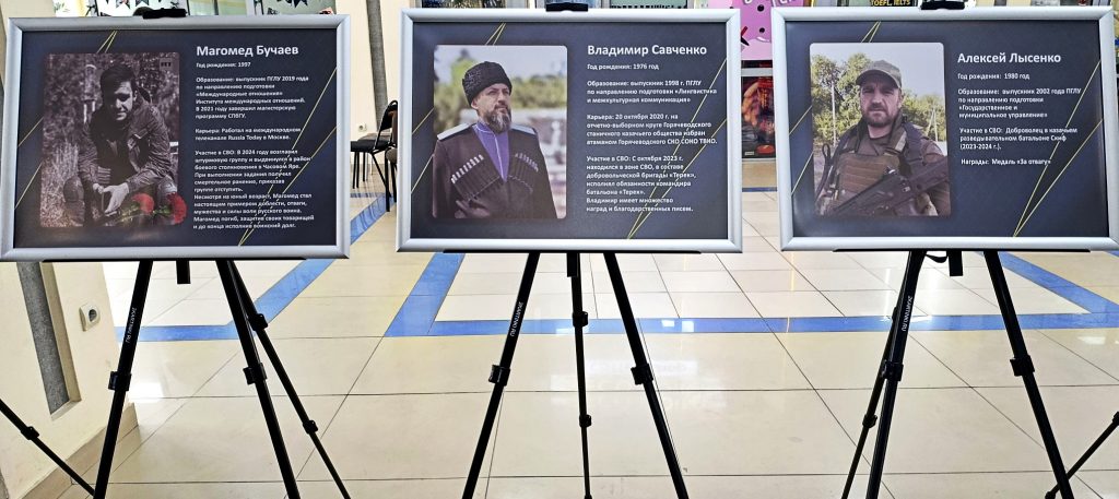 На фотографиях живые и погибшие герои, которыми гордится университет. Среди них и казачий полковник, ветеран СВО, депутат пятигорской Думы Владимир Савченко. В октябре 2023 года он ушел добровольцем на фронт. Больше года выполнял боевые задачи в составе казачьей разведывательной бригады «Терек», был командиром батальона «Терек». Имеет множество наград, среди которых и орден Мужества.