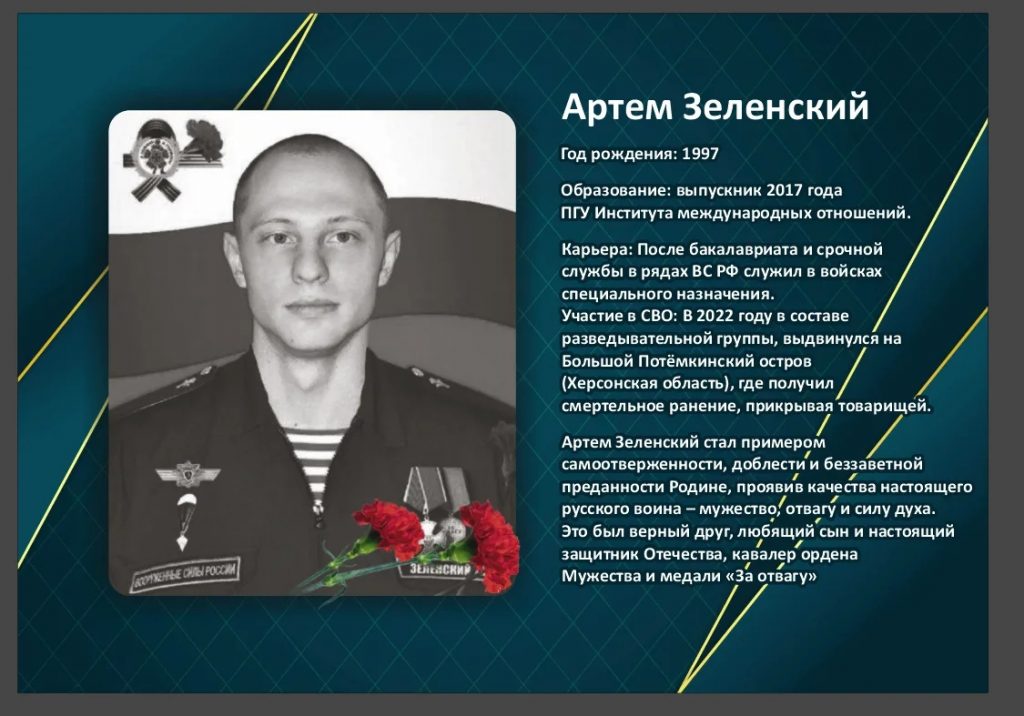 Артема Зеленского смерть настигла в Херсонской области. Прикрывая товарищей, он получил тяжелое ранение, несовместимое с жизнью. Это был верный друг, любящий сын и настоящий защитник Отечества, кавалер ордена Мужества и медали «За отвагу».