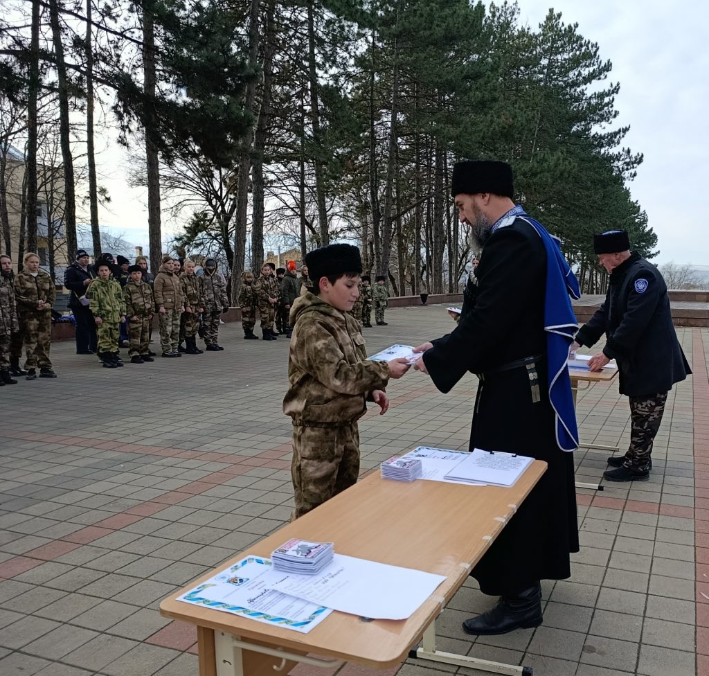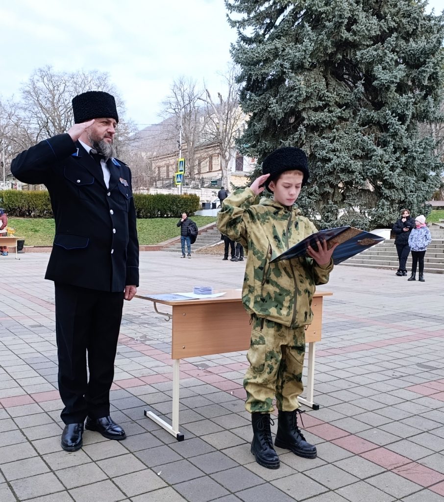 Атаман ГСКО Руслан Иванов, обращаясь к ребятам, пожелал, чтобы это важное событие не просто запомнилось, но оставило яркий след в их судьбе: ведь они получают первый в жизни символ казачьей службы, суть которой — защищать Родину и народ.