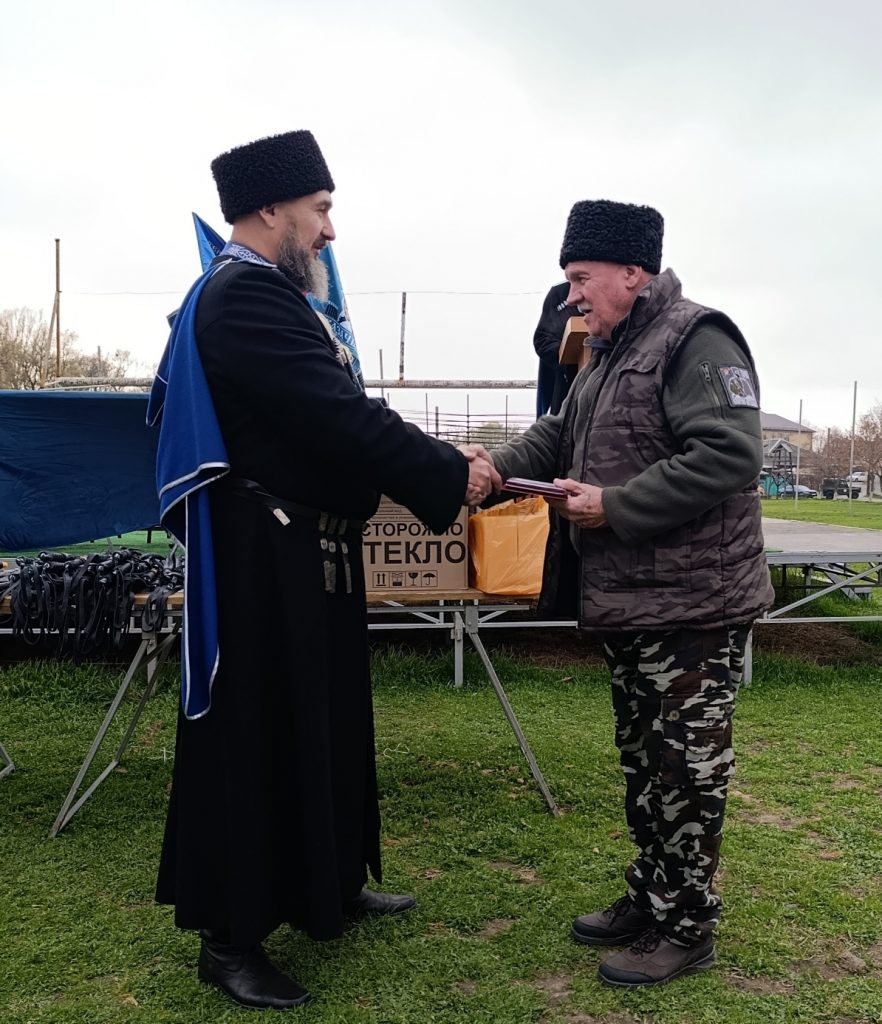 Обращаясь к казакам, Руслан Русланович поблагодарил всех за активное участие в жизни Горячеводской общины.