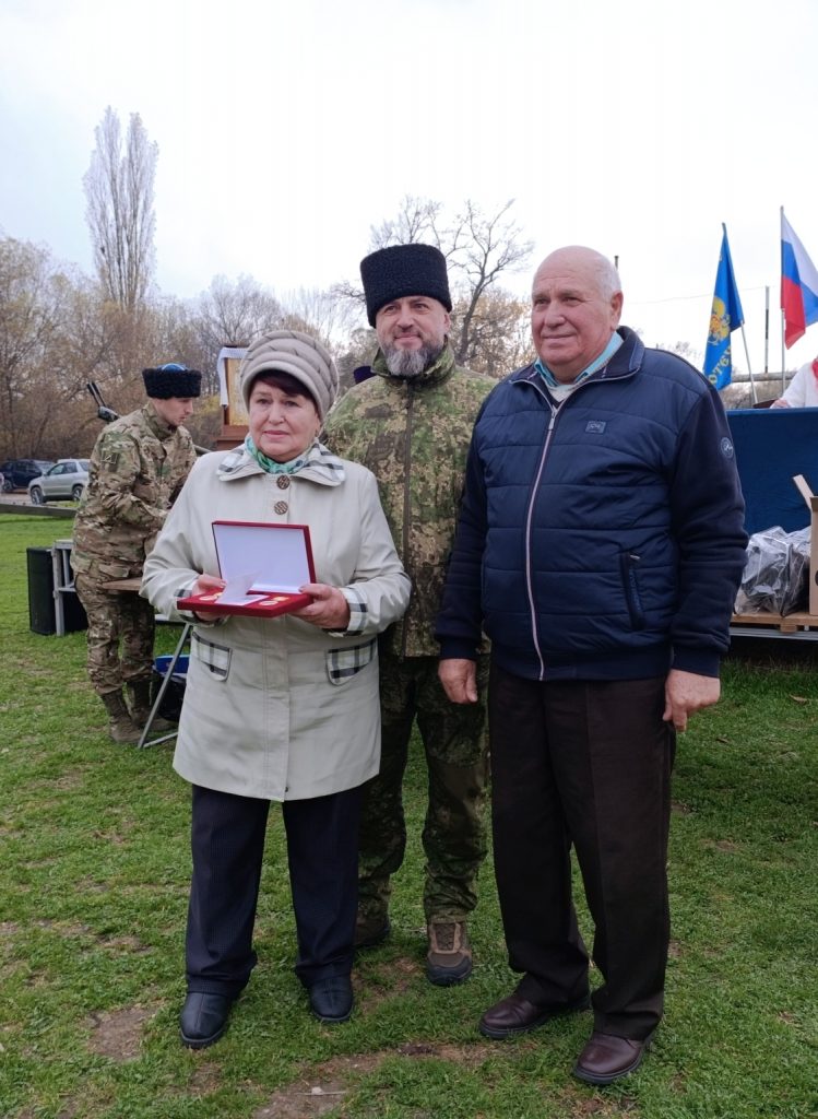 А семье Паршиных, Зинаиде Петровне и Петру Ивановичу, вручил медаль «За сохранение семейных ценностей» от губернатора Ставропольского края Владимира Владимировича Владимирова. За активное участие в жизни казачества атаман Руслан Иванов наградил станичников холодным оружием: казачьими шашками — в связи с юбилеем отметил труды на благо общины наших уважаемых стариков; вручил кинжалы, охотничьи ножи и нагайки горячеводцам, которые внесли свой существенный вклад в развитие станичного общества.