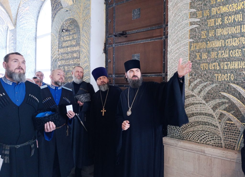 По завершении беседы архиепископ Пятигорский и Черкесский Феофилакт пригласил казаков в Успенский собор монастыря, где объяснил значение мозаичных картин, украшающих храм. Священноархимандрит обители подарил станичникам фотографии с фрагментом мозаики Успенского собора.